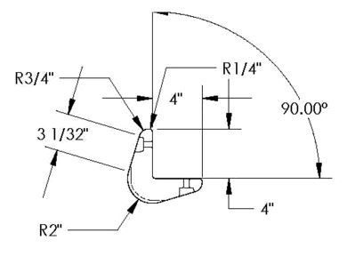 In Bezug auf die Stärke ist er bei R2 = 50 mm dick (an der Ecke) und bei R1 = 25 mm dick (an den Kanten).