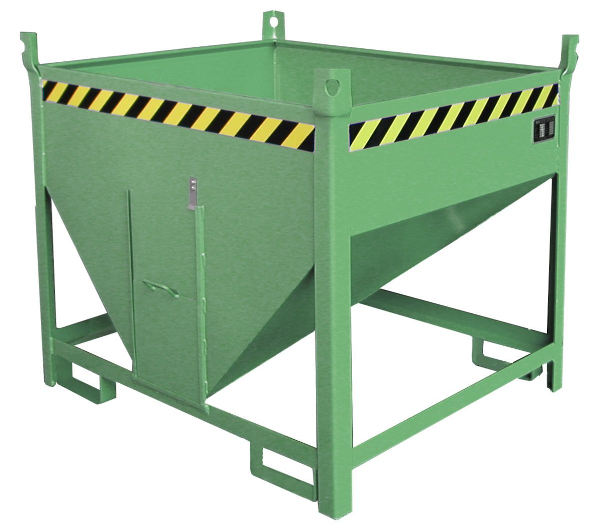 Unsere Silobehälter der Serie SGK/SGS eignen sich für die Sammlung und stirnseitige Entleerung von Schüttgütern. Sie verfügen über einen Trichter aus Stahlblech mit umlaufender Verstärkung und einer Bodenschräge von 30°. An dem Grundrahmen sind Einfahrbügel befestigt, wo der Silobehälter gegen unbeabsichtigtes Abrutschen gesichert wird. Der Silobehälter kann mit einem Gabelstapler, einem Kran sowie einem Gabelhubwagen aufgenommen und transportiert werden und ist 3-fach untereinander stapelbar.