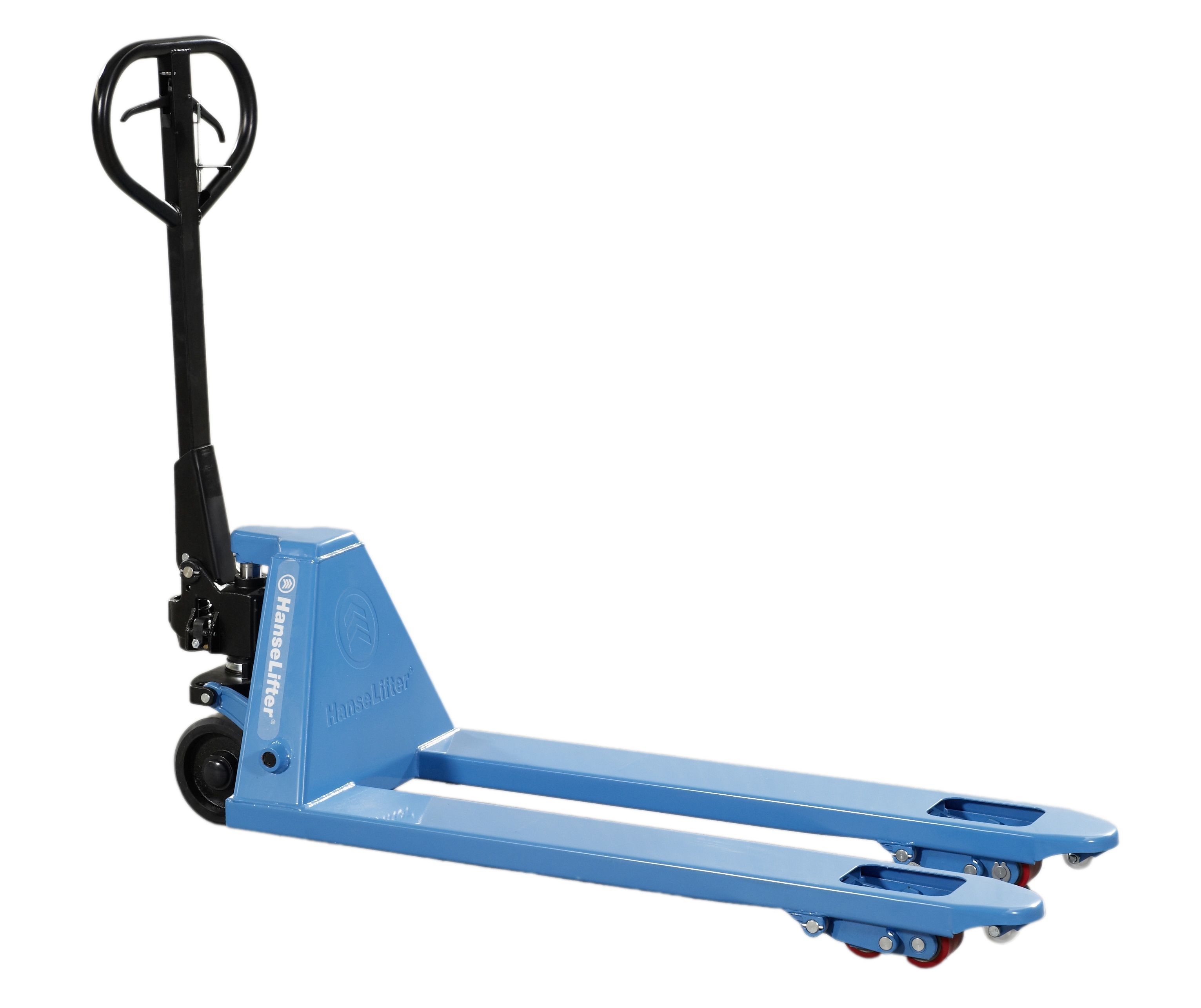 Mit einer Länge von 1.150 mm verfügt der Hubwagen über die perfekten Maße für den Einsatz im Lager. Die Rollen aus PU sorgen für ein geräuscharmes Arbeiten und überzeugen mit Ihrer guten Bodenhaftung.