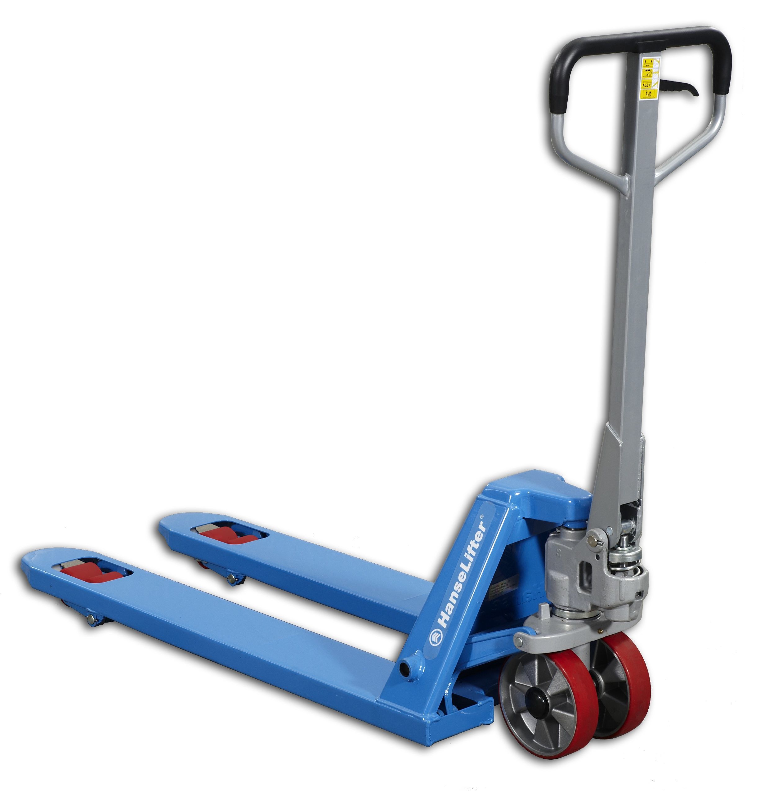 Dies ermöglicht eine Hochleistungspumpe, welche die Waren bis zu einer Last von 150 kg schnell anhebt und bereits nach drei bis vier Hüben seine Maximal-Hubhöhe von 200 mm erreicht. Bei einer Tragfähigkeit von 2500 kg und den geräuscharmen Polyurethan-Tandemrollen macht so das Arbeiten mit dem Hubwagen besonders Spaß.