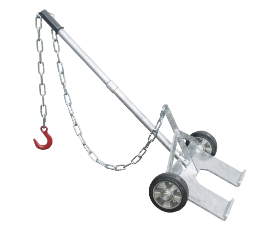 Unser Palettenzug vom Typ PZ ist ein zeitsparender Helfer beim Entladen von Paletten vom LKW. Er besteht aus einer robusten, feuerverzinkten Stahlkonstruktion und ist zusätzlich auf Wunsch in RAL 3000 lackiert. Er ist einsetzbar für Paletten, die durch die Gabelzinken nicht erreichbar sind und ermöglicht ein schnelles und sicheres Einsetzen in die Palette. Durch die abnehmbare und zerlegbare Führungsstange mit Handgriff spart er platz beim Lagern.