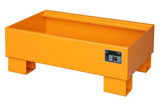 Unsere Auffangwannen vom Typ AW 60 dienen der Lagerung von max. 6 Fässern a 60 Liter, auch mit Kleingebinden kombinierbar. Die Konstruktion besteht aus einem 3 mm dicken Stahlblech und besitzt eine Unterfahrhöhe von 100 mm.