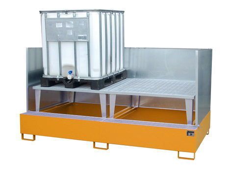 Unsere Auffangwannen vom Typ AWA/SW sorgen für ein sicheres Handling beim Abfüllen, Befüllen oder bei der Reinigung von ölverschmierten Teilen. Dazu dienen sie der Lagerung von max. 3 Containern (IBC) á 1000 Liter und sind auch mit 200/60 Liter Fässern und Kleingebinden kombinierbar. Die Konstruktion besteht aus 3 mm dicken Stahl mit einer Unterfahrhöhe von 100 mm. Unsere Auffangwannen vom Typ AWA/SW sind mit Abfüllaufsätzen erhältlich oder in Kombination mit einem verzinktem Gitterrost mit einer Tragkraft von 1000 kg/m². Zusätzlich sind die Wannen mit einer 3-seitigen verzinkten Spritzschutzwand ausgestattet.