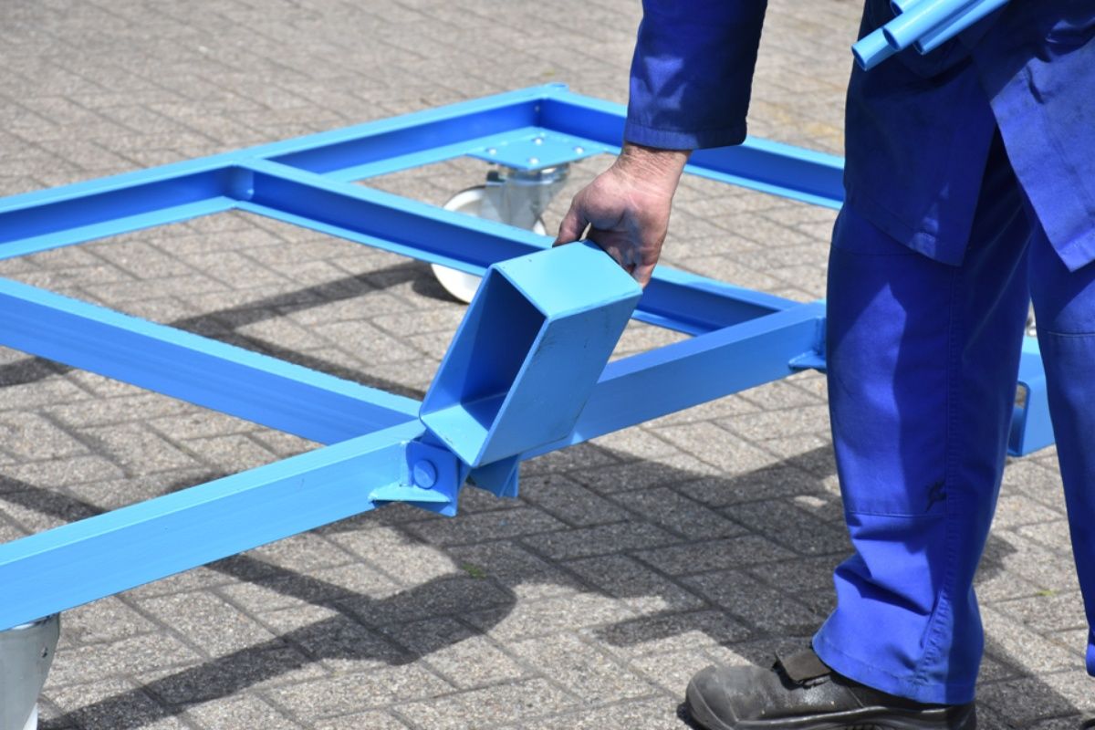 Somit kann der Wagen bequem über den Stapler bewegt werden.