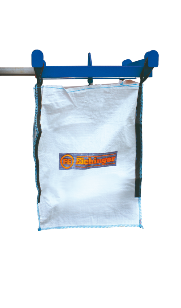 über spezielle Aufhängevorrichtungen, die es ermöglichen, den Big Bag sicher zu