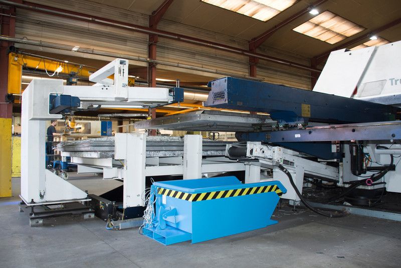 Unser Mini-Kippbehälter Typ MGU verfügt über eine besonders niedrige Bauhöhe und eignet sich somit ideal als Kippbehälter unter Maschinen.