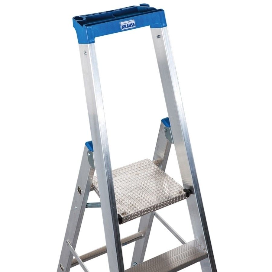 Unsere Stabilo Stufen-Stehleiter verfügt über eine Alu-Sicherheitsplattform aus Pressprofil mit rutschhemmender Profilierung und beidseitigem Plattformheber.