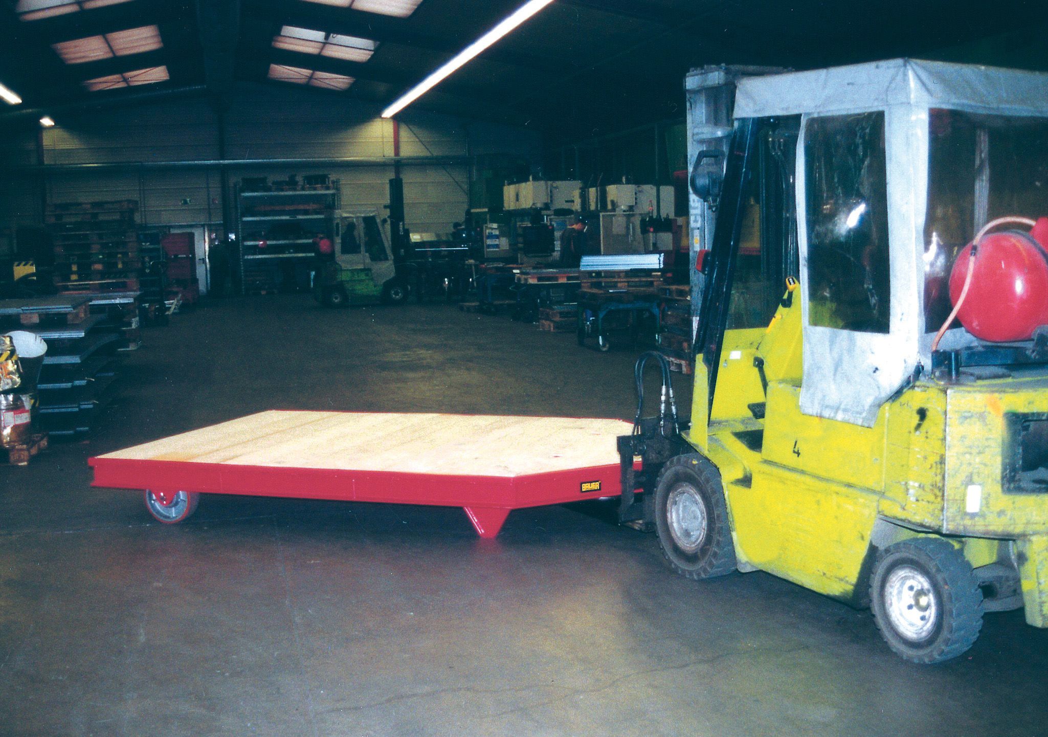 Der Tender ist eine Art Anhänger oder Plattform, die an den Gabelstapler