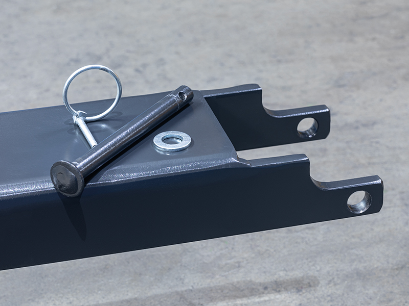 - Die Bolzensicherung ist gegen Verlust mit einer Kette gesichert